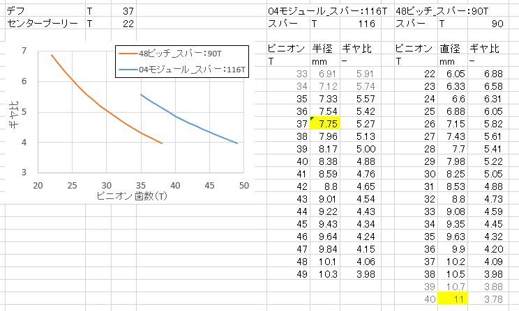 とりあえず,AXONの90T-48ピッチ(直径49mm!)または,TRFの116T-04モジュール(直径47mm)あたりを使用すればよさそう.