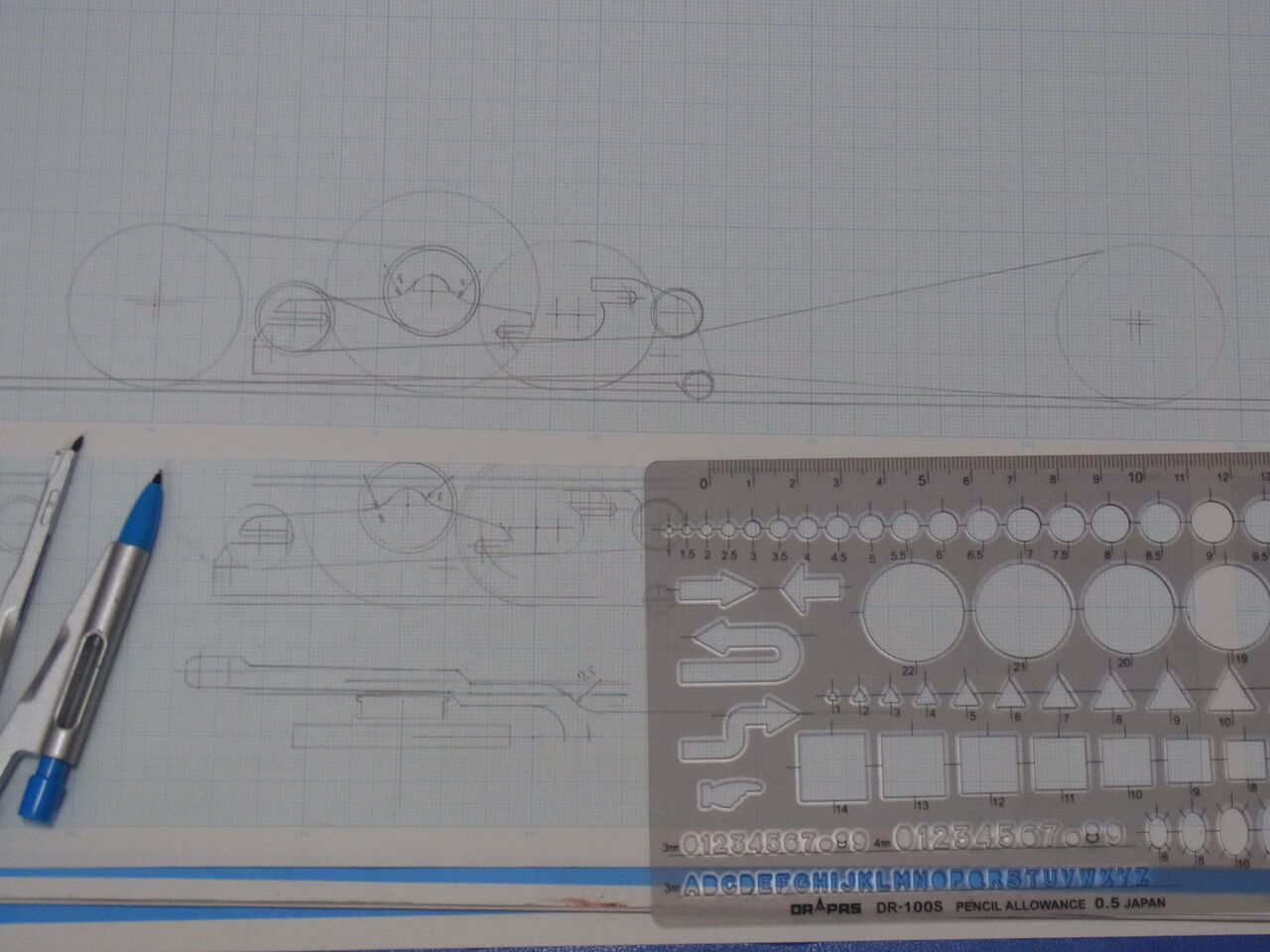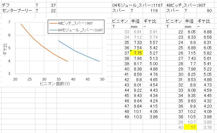 というわけでモータープレートを設計して,スパーとモーターの位置を決めて,ギヤ比計算…