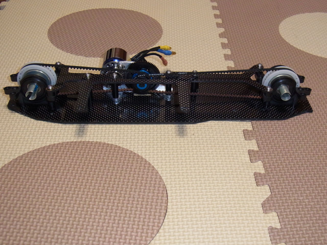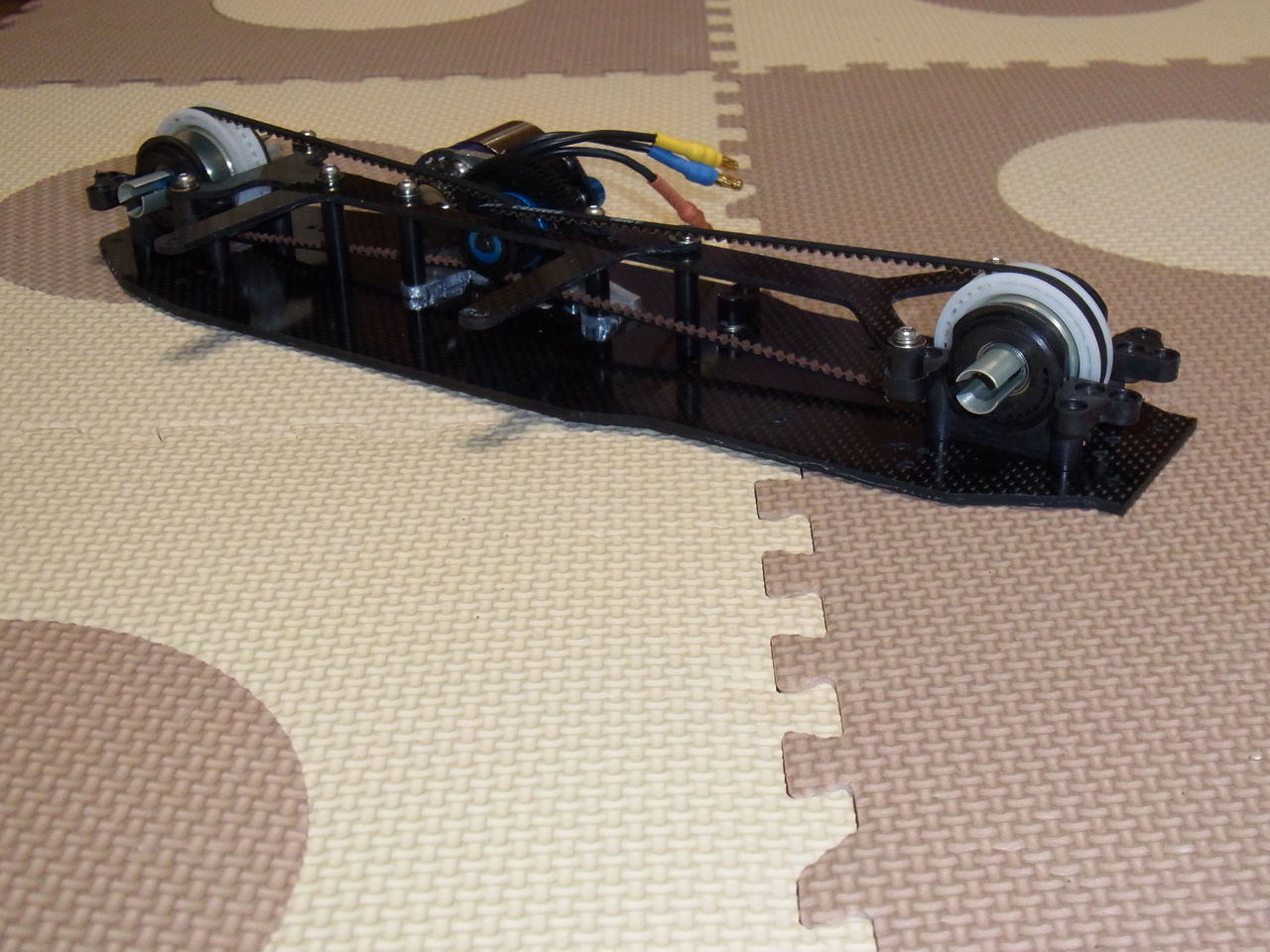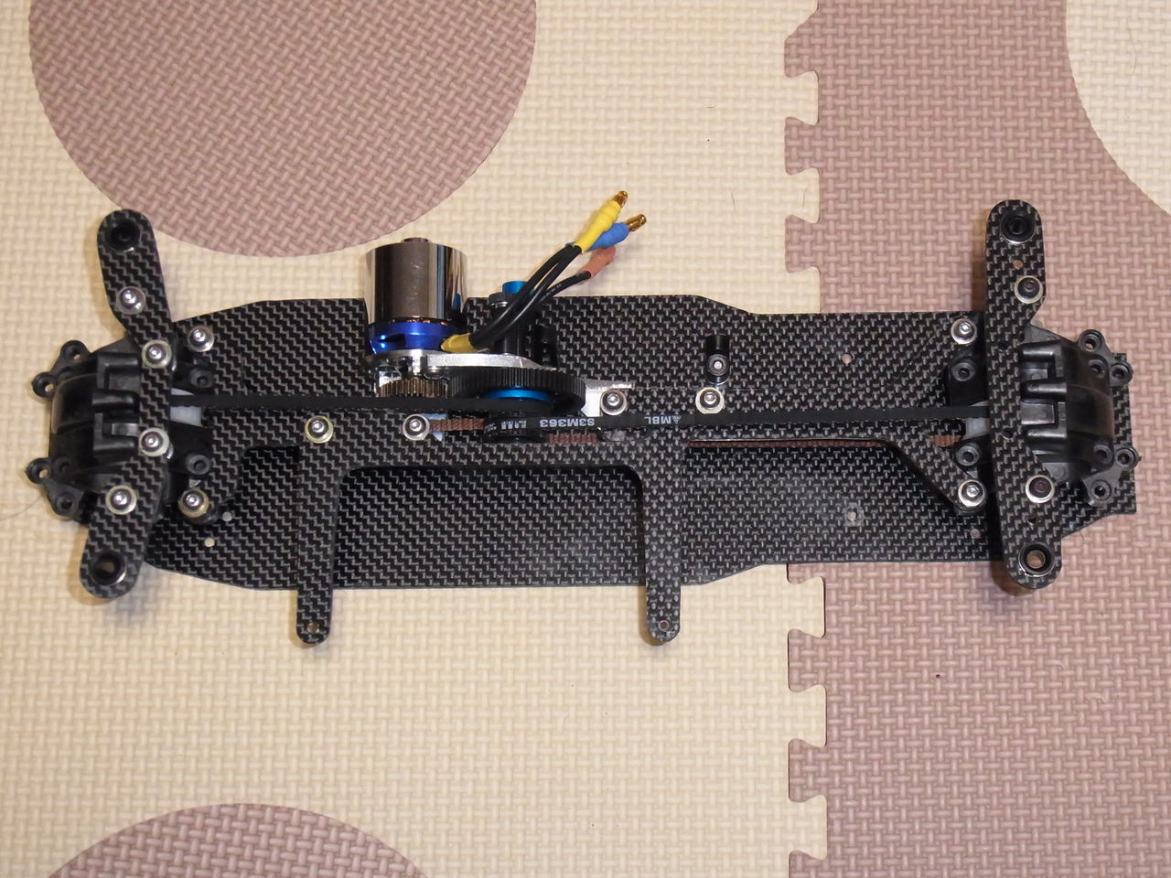 さっそく組んだ.とりあえず前後はTA06のボールデフ+37Tのプーリ.TA06のボールデフはTRF417と同じなのか,適当に組んでもスルッスルだ.プレート磨きも不要.個人的には,磨かなくてもソコソコの性能を長く保つロバストなデフの方がありがたい.